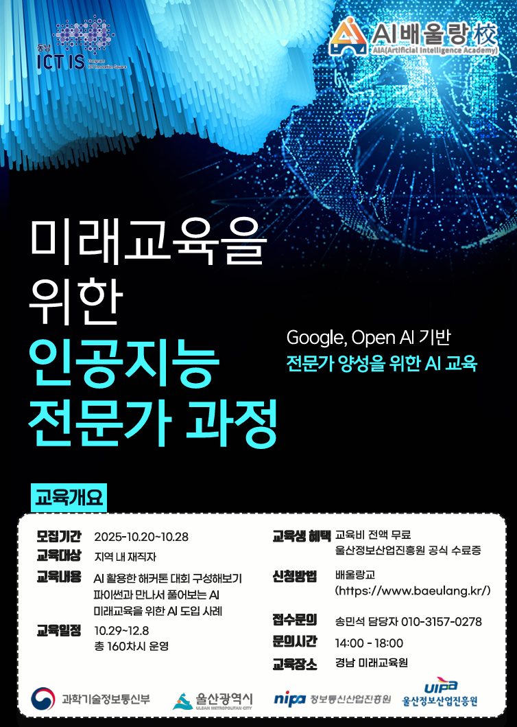 | 교육일정 | 2025. 10. 29. ~ 2025. 12. 08. (총 160H) / 15:00~18:00 (41 차수) |