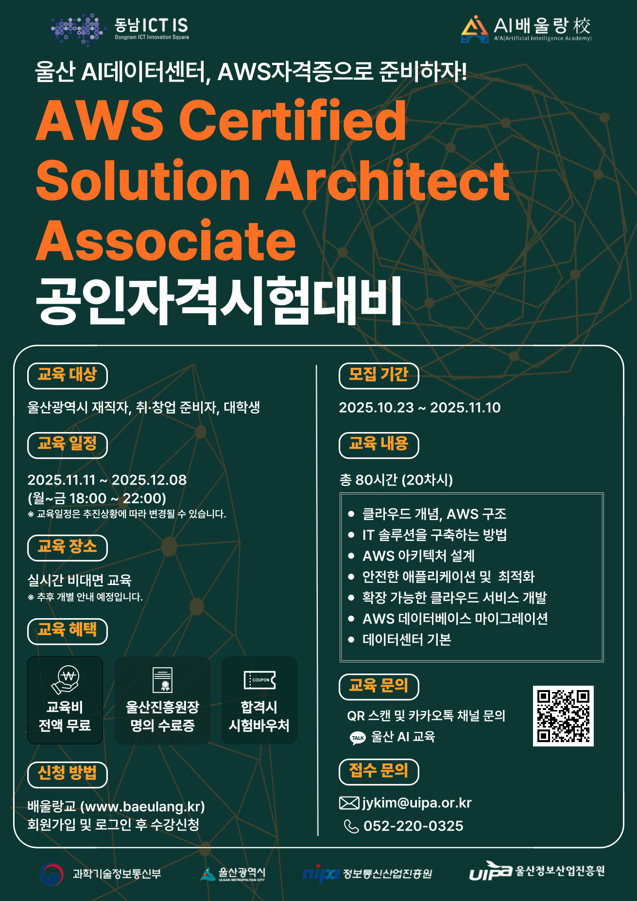 | 교육일정 | 2025. 11. 11. ~ 12. 08. (총 80H) / 18:00~22:00 (20 차수) |