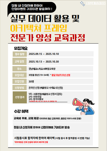 ▶ 과정명 :실무 데이터 활용 및 아키텍쳐 프레임 전문가 양성 교육과정 (쉬었음 청년 대상)