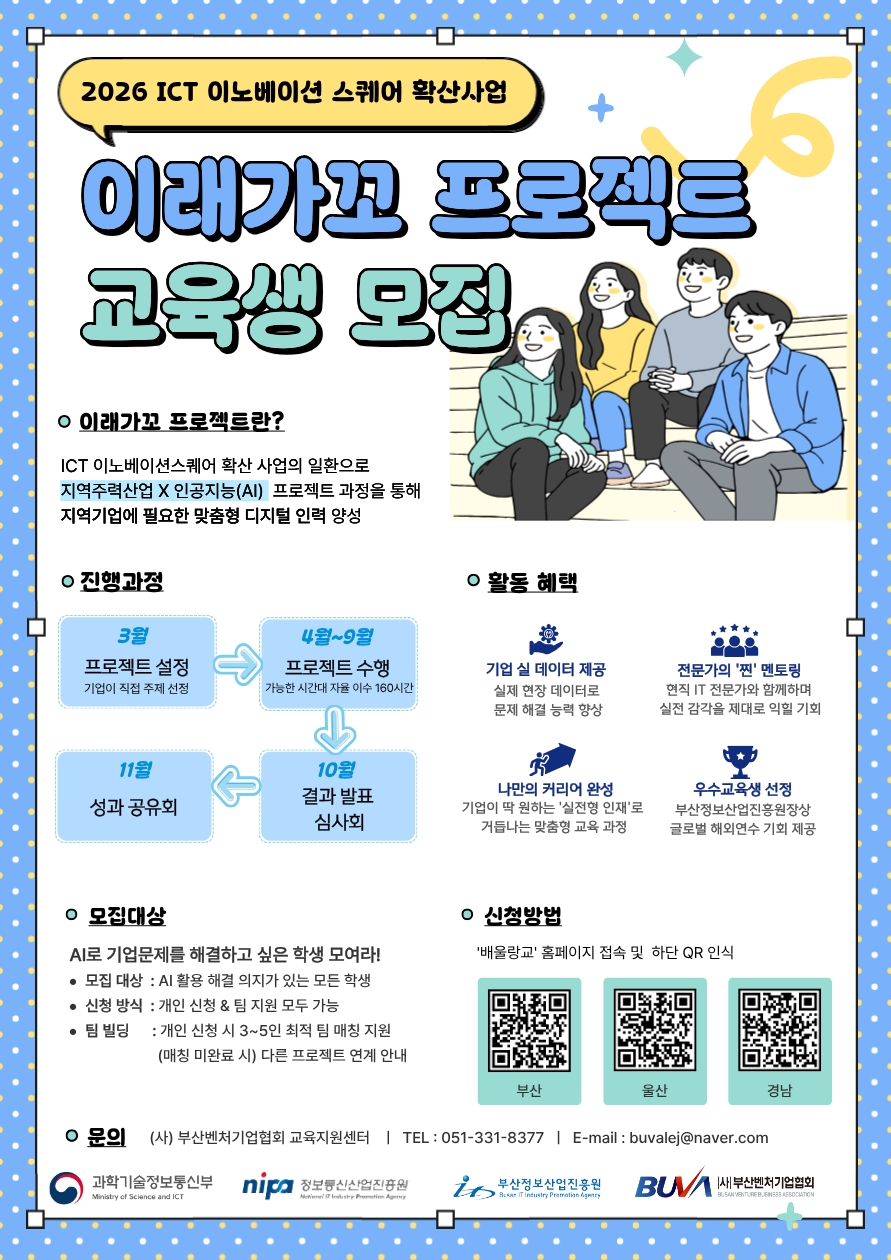 「이래가꼬 프로젝트」의 참여할 교육생을 다음과 같이 모집합니다.