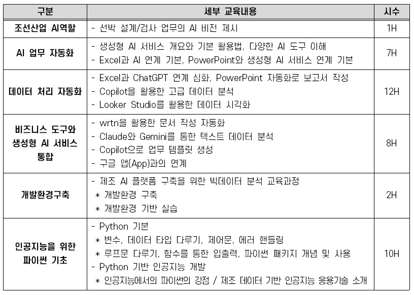 | 교육일정 | 2025. 11. 7. ~ 2025. 12. 5. (총 40H) / 09:00~18:00 (5 차수) |